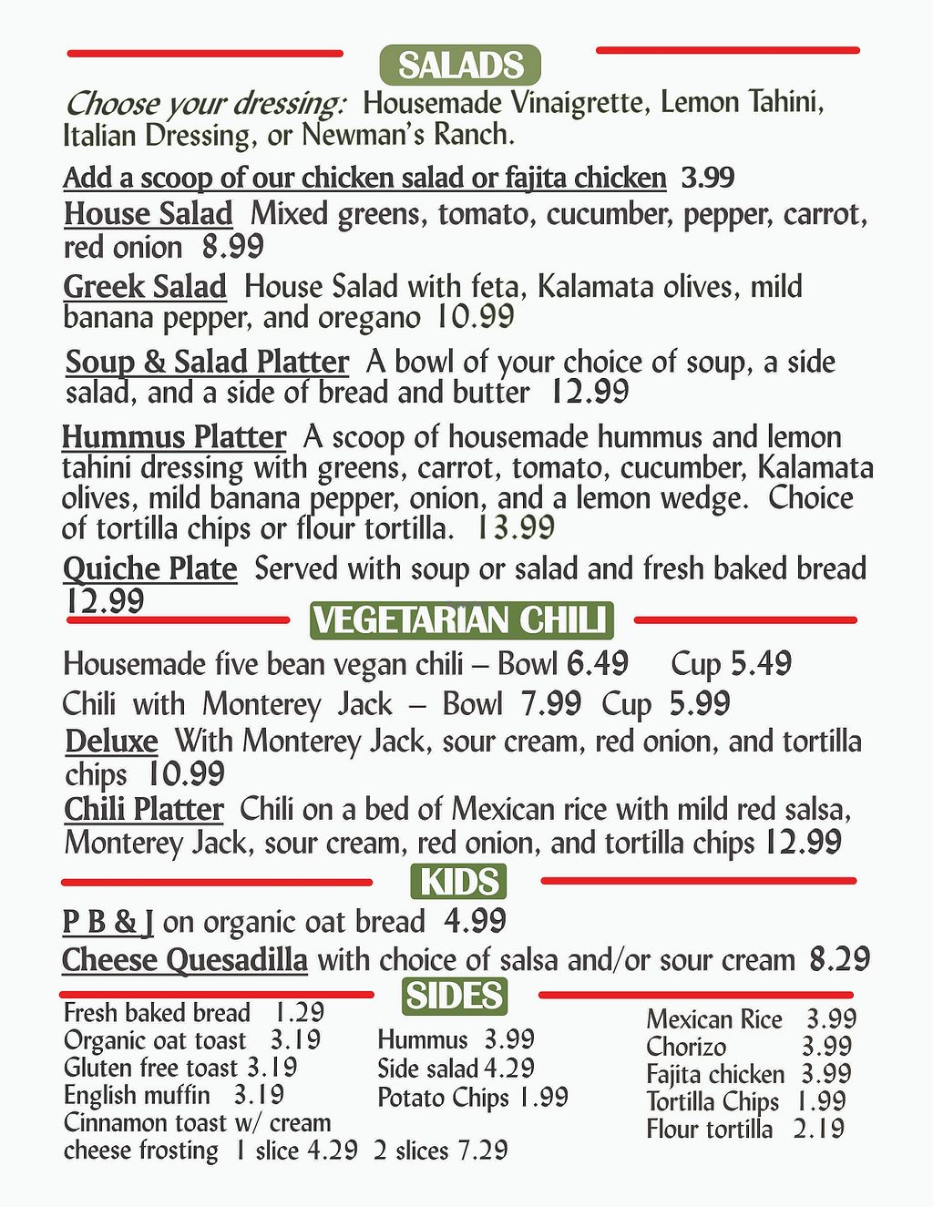 There aren’t a ton of options, but it’s a cute little cafe, and the vegan chili is good.