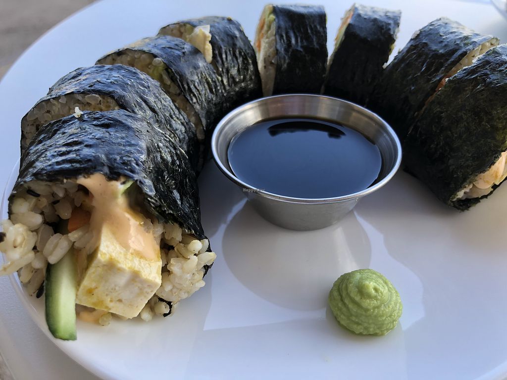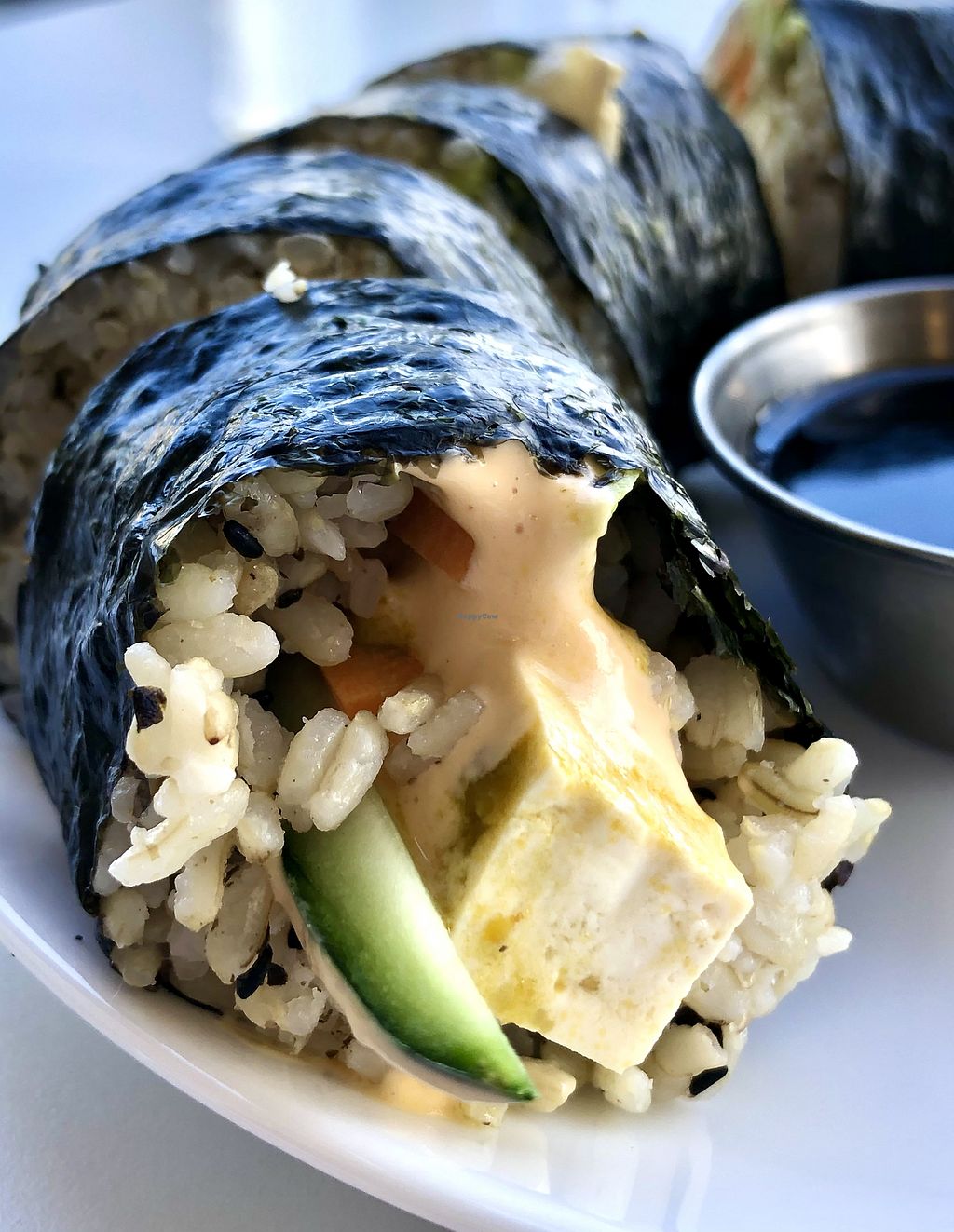 The Spicy Tofu Roll-brown rice, carrot, cucumber, avocado, marinated r…