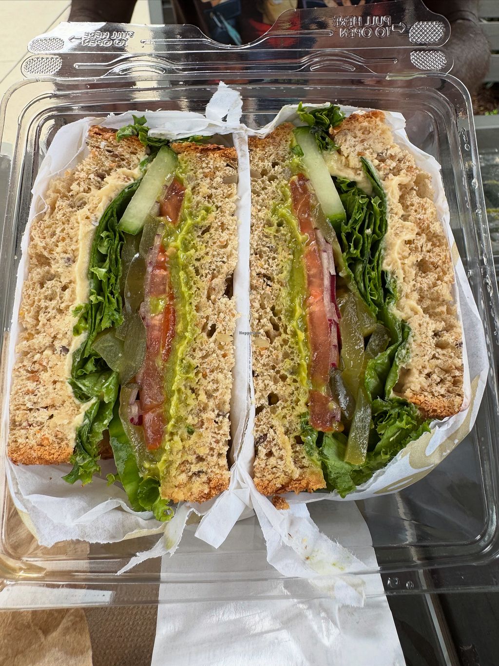 Hummus & avocado spread, carrots, lettuce, tomatoes, onions, pickles a…