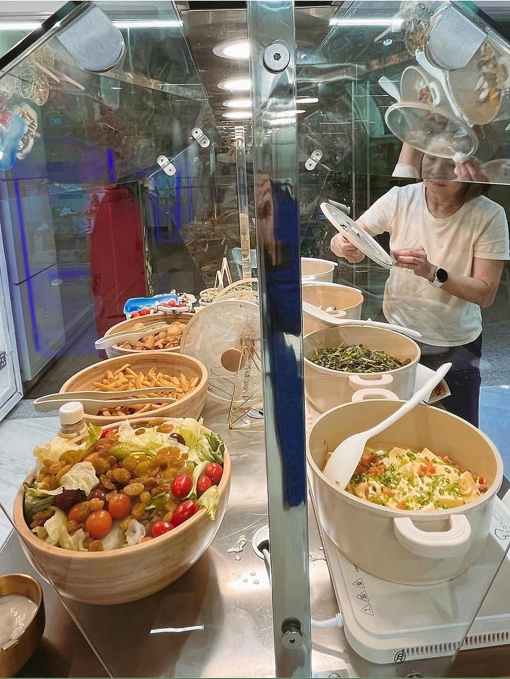 Plant-based eatery and sustainability hub with a buffet-style pay-by-weight concept and bring-your-own-container encouraged. Offering dishes like “Cha Siew Puff”, “Lemon Mutton Curry”, “Butter Prawns”, tomato with tofu, spinach in golden pumpkin soup, and sea salt dark chocolate cookies. Also offering mock meats, vegetable dishes, porridge, desserts, and drinks. Open Mon-Fri 8:00am-3:00pm. Closed Sat. & Sun.