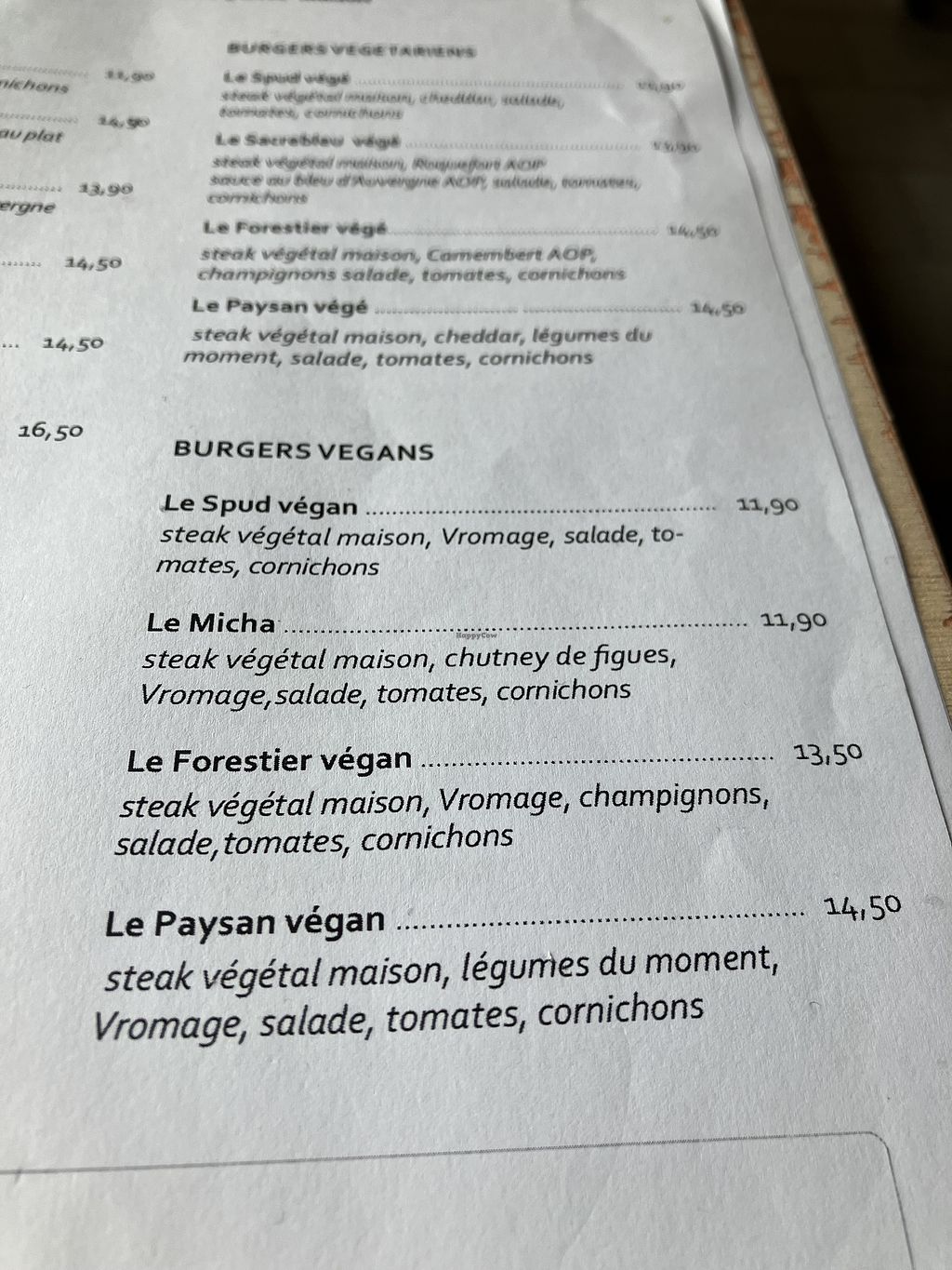 tasty filling vegan burger with delicious frites. very kind server. limited vegan options but I'll take it 👌