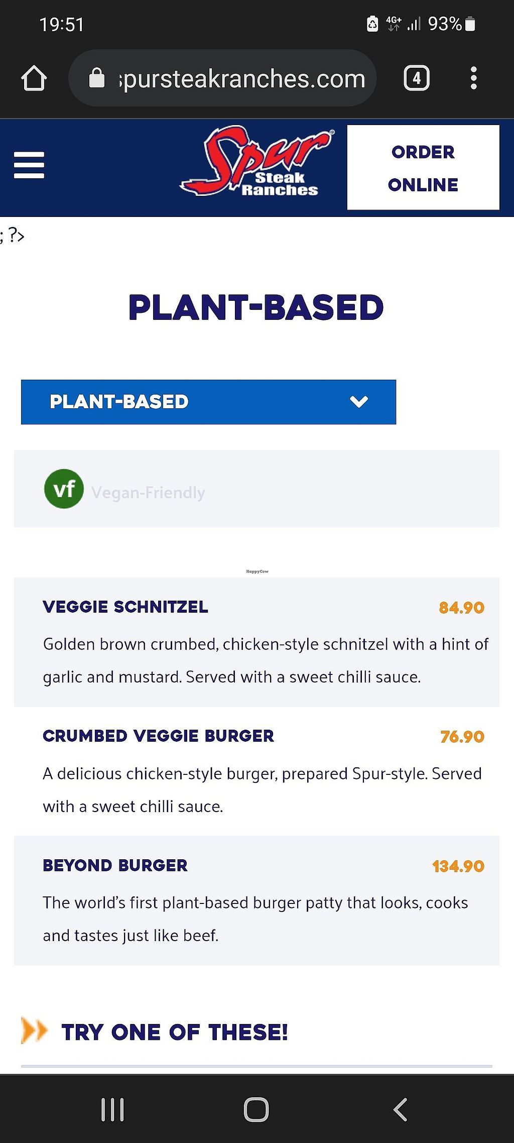 Vegan options at Spur. - Edit