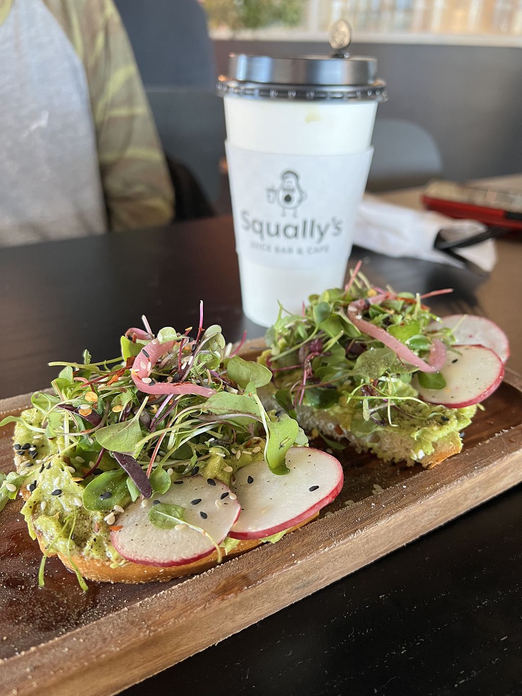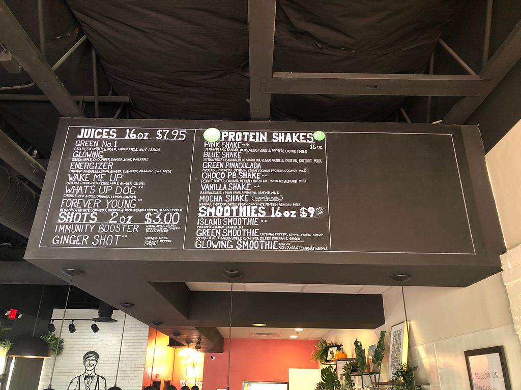 Serves meat, vegan options available. Health cafe and juice bar est. 2020. Offers juices, kombucha, detox teas, fresh coconut water as well as separate vegan protein smoothie menu. Serves light foods like avocado toast, chia pudding parfaits, vegan baked goods, and energy balls. Menu is all veg/vegan except for one turkey dish. Reported closed October 2023.
