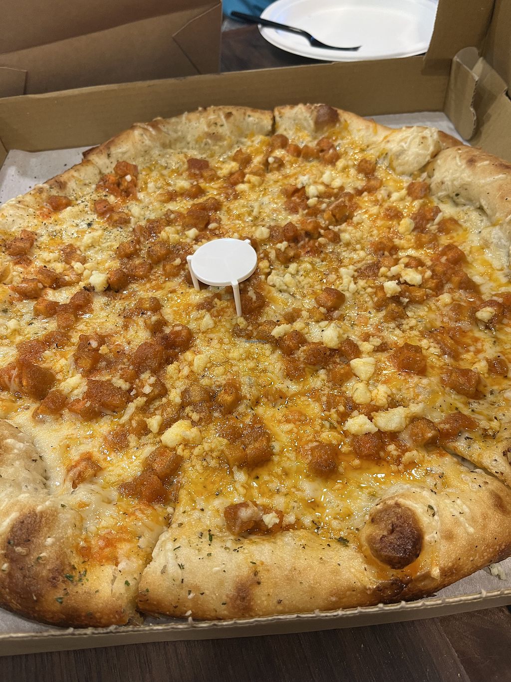 Just ate here for the first time. Buffalo pizza is awesome. The blue cheese dressing is especially good. Will definitely be coming here on the regular.