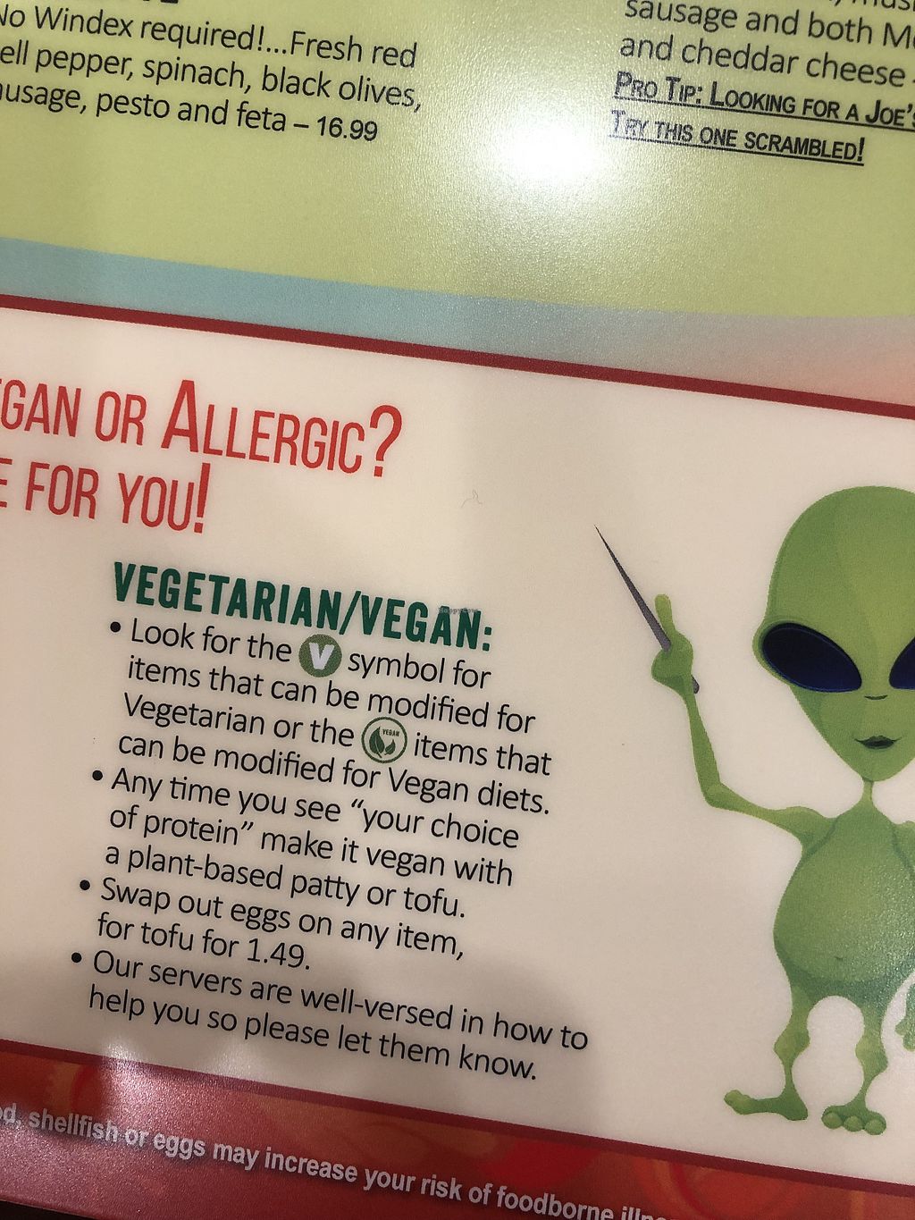 Read moreThey have beyond sausage available to add to dishes along with an extensive non-veg menu which has items clearly marked that can be “veganized”. Most of these things have cheese and/or butter which is just left out of the vegan versions. Egg can be replaced with tofu.