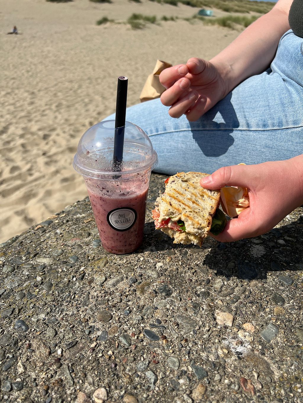 We had the berry smoothie and green smoothie, along with beetroot hummus and avocado toasts for breakfast. Served on sourdough and presented beautifully, it felt like a treat, although of everything that could be eaten at the seaside, this was absolutely the healthiest.