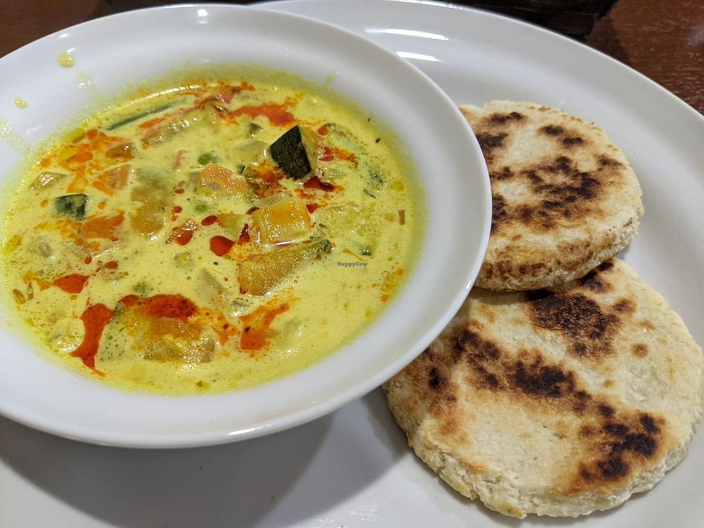 Had a delicious dinner set consisting of salad, vegetarian curry, dessert and drink. Staff was very friendly and understood our dietary needs.