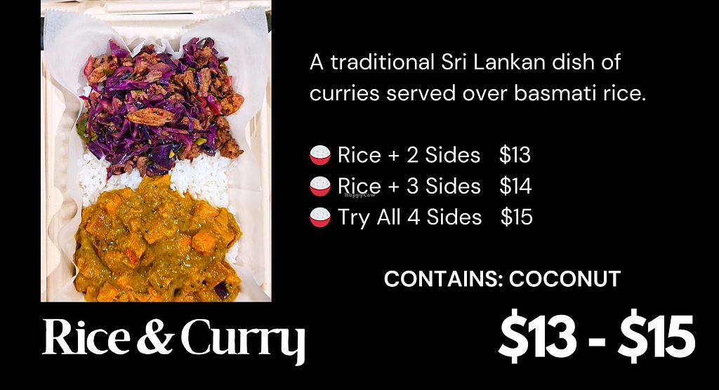100% plant-based Sri Lankan restaurant specializing in Basmati rice and curry dishes featuring rotating, plant-powered protein options. Popular options include 'Sweet Potato Curry', 'Beet Curry', and 'Chickpea Curry'. Other popular Sri Lankan-inspired meals are the 'Soy Curls Stir-Fry with Purple Cabbage', & 'Tofu Chorizo Scramble with Red Beans'. Open Tue-Sat 12:00pm-7:00pm, Sun 12:00pm-6:00pm. Closed on Mondays