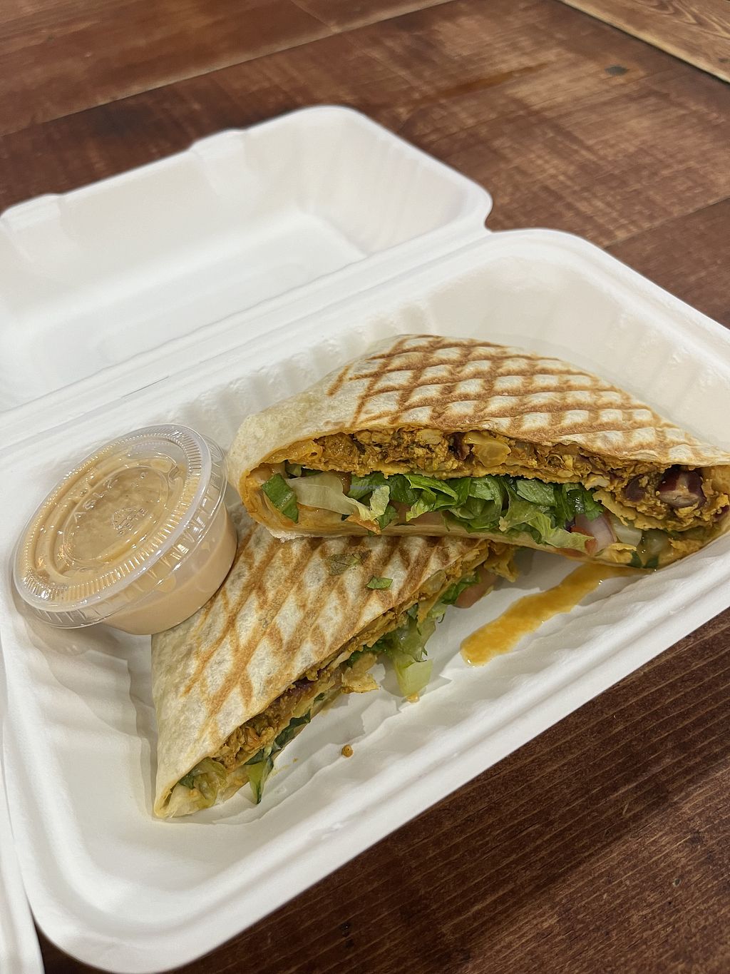 Located inside Logan St Market, this is a wonderful spot for vegan food with a more healthful focus, when traveling Chicago to Florida and back or visiting the Louisville area. Nothing deep fried, just flavorful and filling fiber-filled dishes. The owners are lovely people, the food is delicious and fairly priced for the quantity and quality. They also sell a small variety of clothing, bags and high quality fragrant spices and tea from Sri Lanka. We had a curry dish and the crunch wrap. I was also able to purchase a pouch of black ginger tea, curry powder and Ceylon cinnamon. We enjoyed our food and we will return next time we are in town.