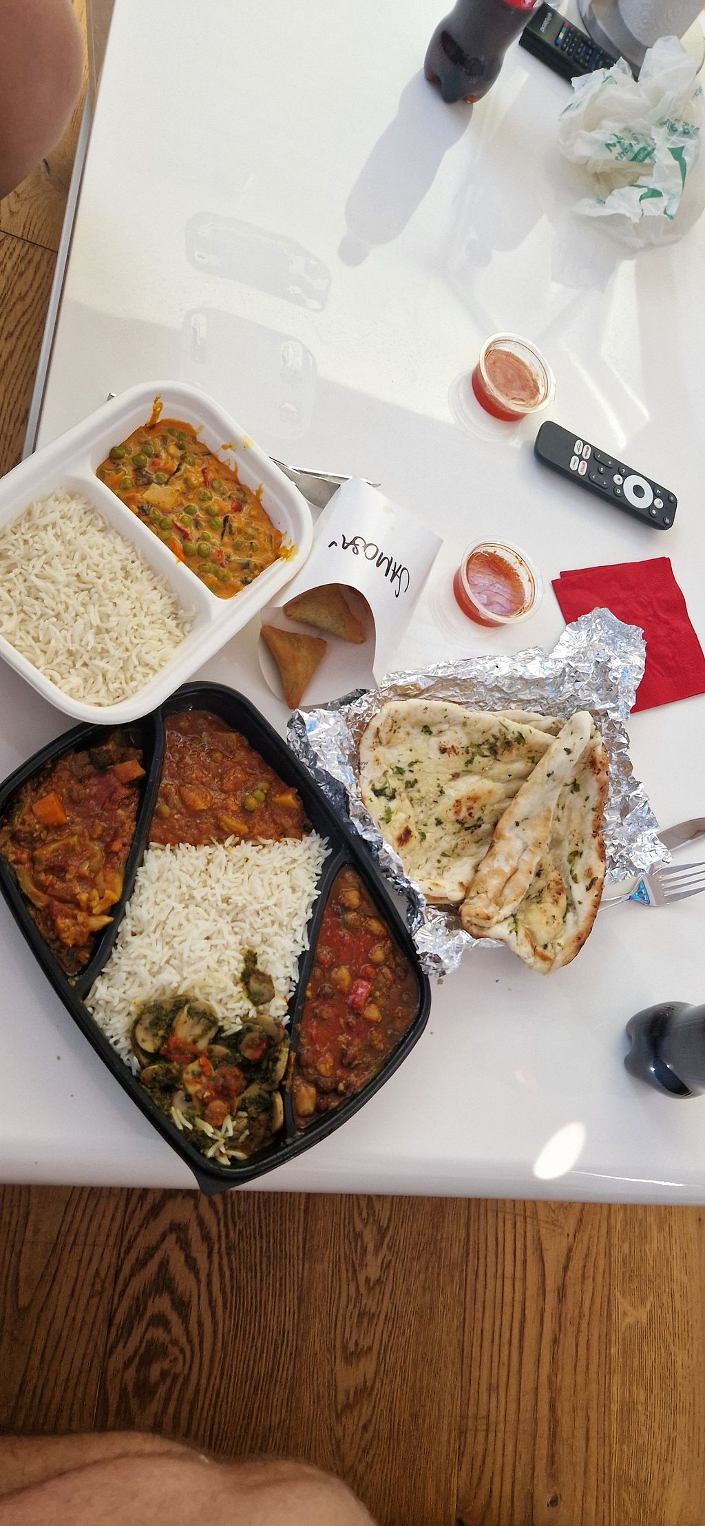 Leckere Currys mit Garlic naan mit veganer Butter erhältlich