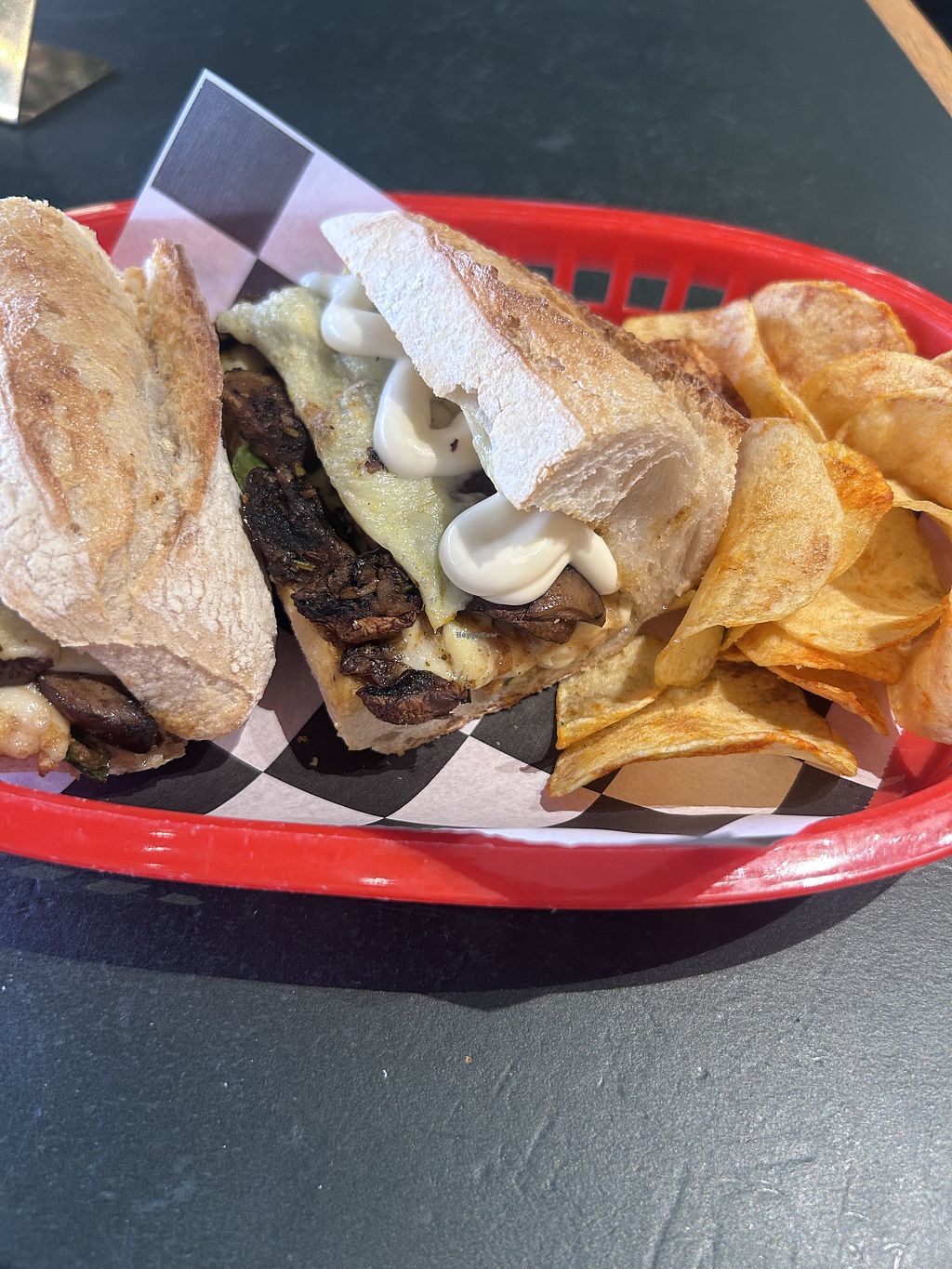 The big vegan Philly steak with crisps is sp good - generous with the vegan cheese, mayo tho mushrooms could have more flavour. Genuinely good option at the Melb international airport otherwise