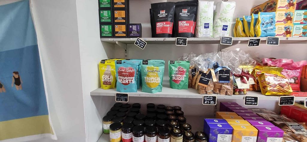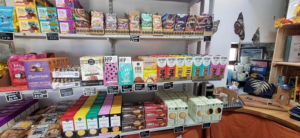 An excellent cafe and a wee shop! It might actually be vegetarian, I don't remember seeing meat there. Out of three pie options, two were vegan and one was vegetarian. I tried the vegan haggis pie and was very happy with my choice. You also find some sandwiches, hummus, even Applewood vegan cheese in the chiller, and the selection of vegan sweet treats is excellent, too! They even had a Scottish vegan cookbook for sale. The service was very friendly. Lovely souvenirs too, check their website if you cannot visit in person. The physical store is open April-October.