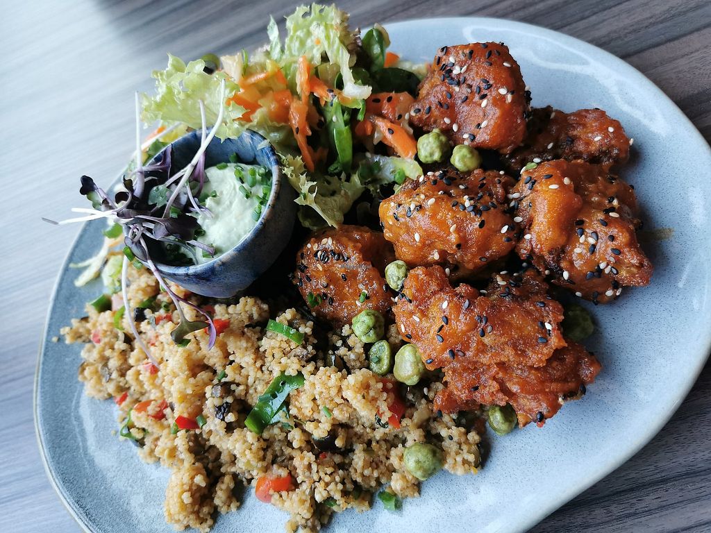 Blumenkohl "Wings" mit Couscous und Veganaise