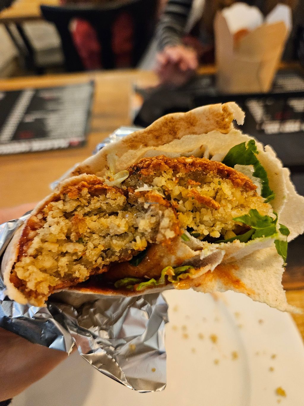 Lacto Ovo Fast food Beer/Wine Take-out Middle Eastern Honey Non-veg Serves meat, vegan options available. Fast food restaurant offering a falafel wrap and a falafel box. Specify vegan. Open Wed-Sun 12:00-20:00. More