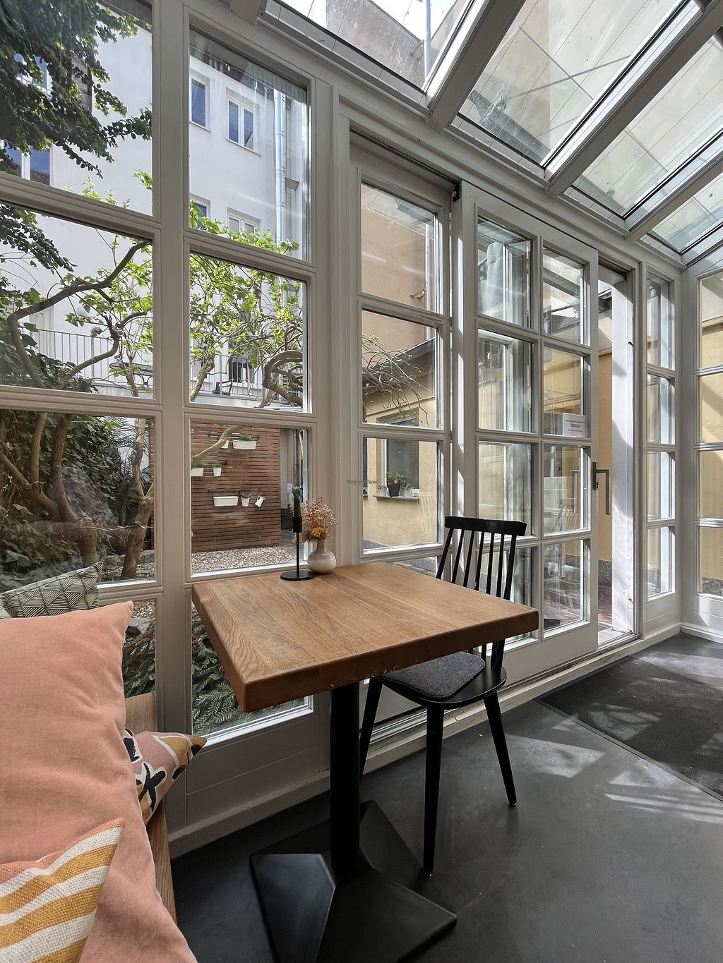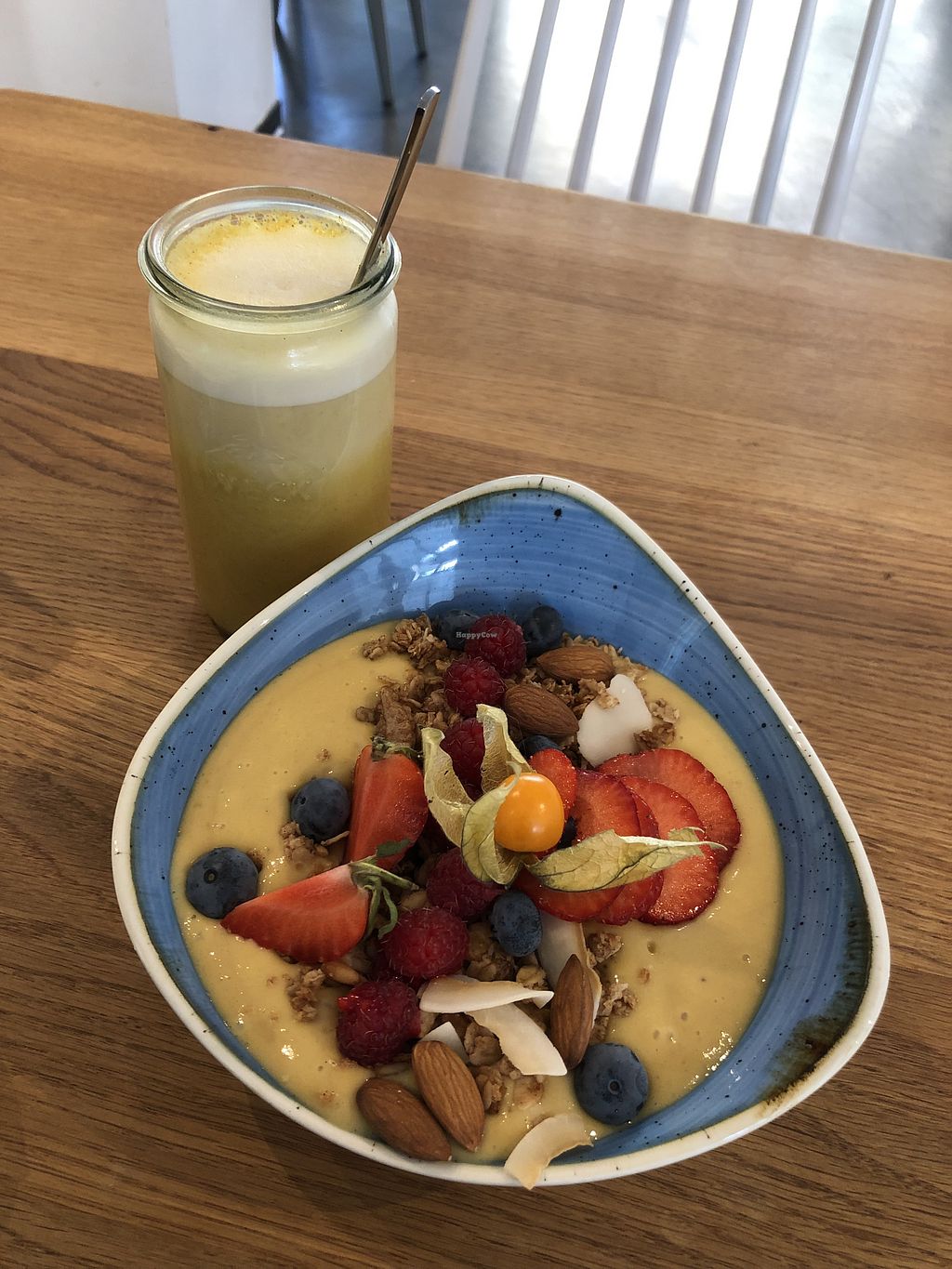 Cheese cake, cinnamon bun and iced latte with espresso shot :)