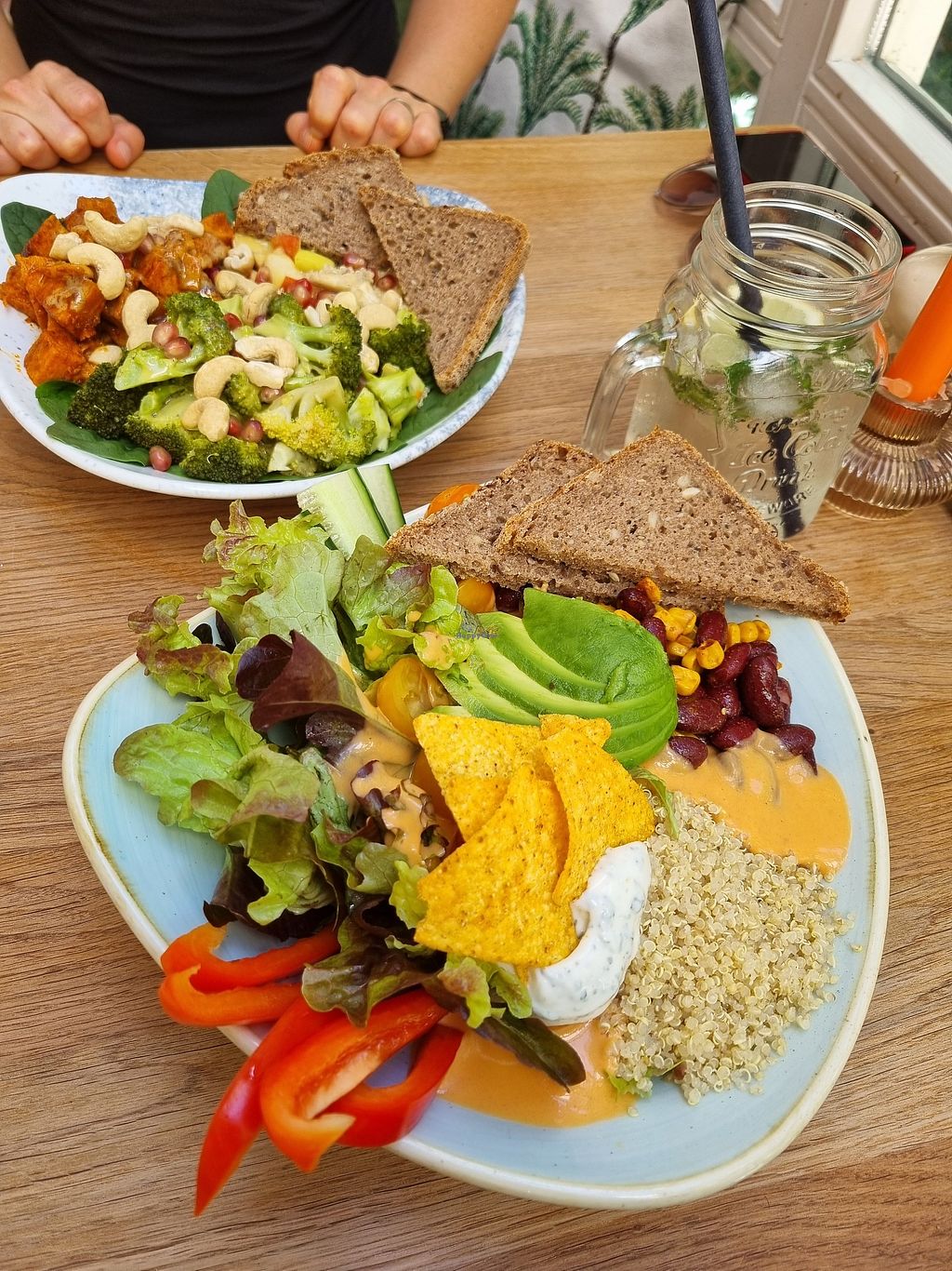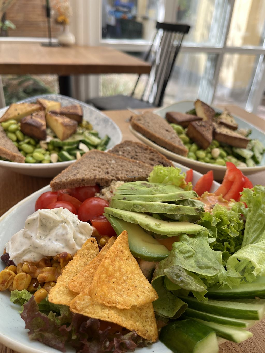 Veganer Himbeer Cheesecake und Cappuccino mit Oatly,