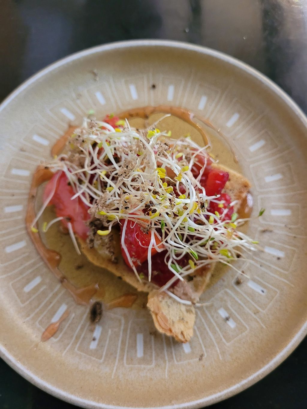 Serves meat, vegan options available. Offers a tasting menu experience that regularly changes to reflect seasonal produce. The six-course tasting menu can be made fully vegan, showcasing ingredients from the smokehouse, brewery, and market garden. Open Mon 12:30-15:00, Tue 18:00-21:30, Wed 18:00-22:00, Thu-Fri 18:00-21:30, Sat-Sun 18:00-22:00. On the days where they open from 12.30, they are actually open from 12.30-14.00, then again from 18.00-21.30/22.00.