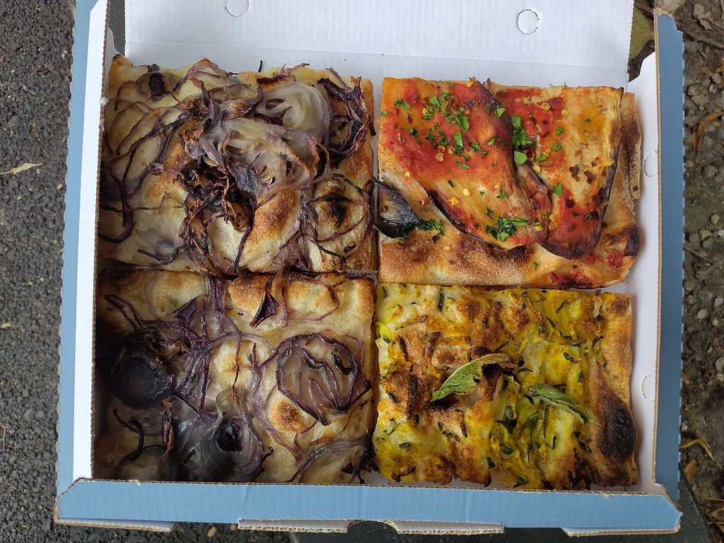 We had pizza with red onions, pizza with curry and mint and spicy pizza with eggplant. The pizza with the onions was very tasty. The rest was okay.