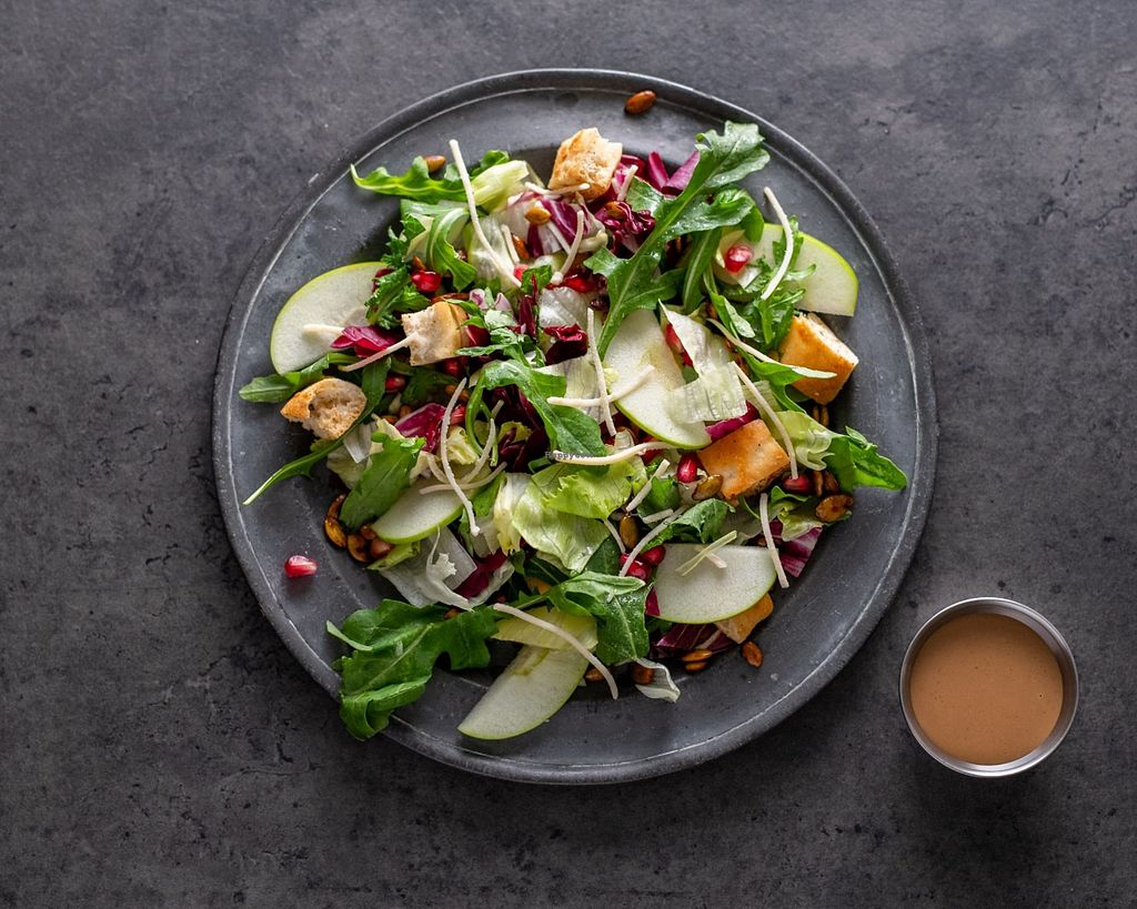 The Do-Gooder - Mixed greens, arugula, apples, pomegranate, candied pe…