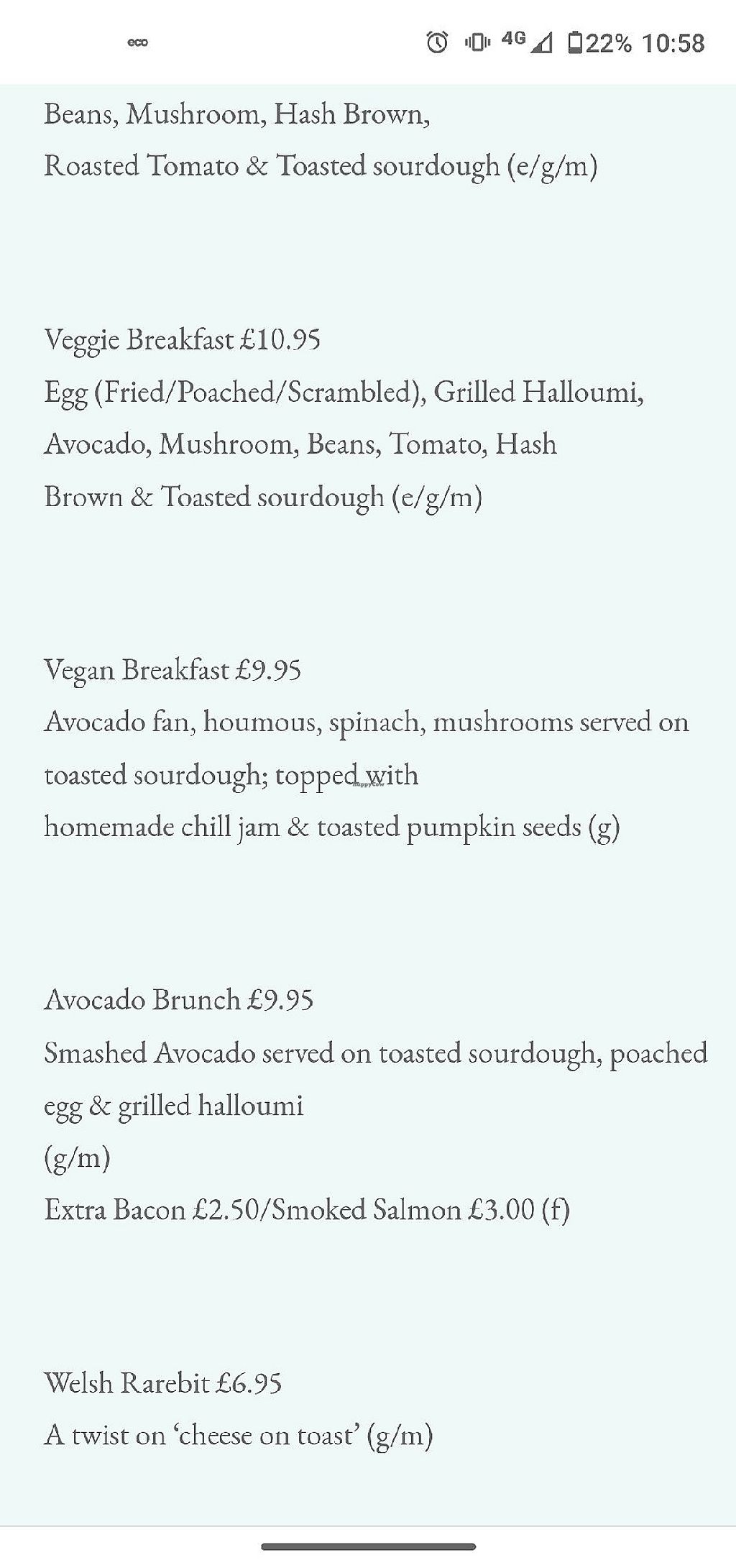 Good that they have a vegan option for breakfast. Would be nice to have a full vegan breakfast and vegan sausage/bacon sandwich options too. We don't always fancy houmous, spinach and avocado for breakfast. Really tasty though.