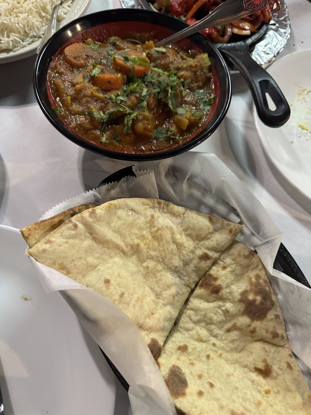 I love that the online menu has photos and everything is clearly marked vegan! You can get appetizer special but instead of samosa they give you extra pakora and bhagee. The samosas are not vegan I was informed today. The food is delicious and full of rich complex flavors . Id like if they had vegan samosas though because they’re my favorite! I will try more entrees as there are several vegan dishes to choose from! The gentlemen who work here are exceptionally friendly and have great customer service. You feel very welcome and invited and the decor is also extremely beautiful .
