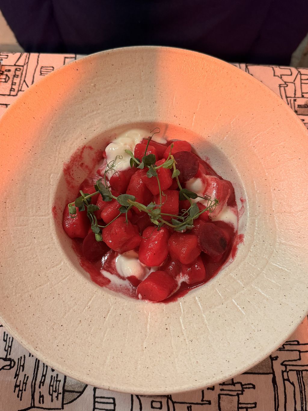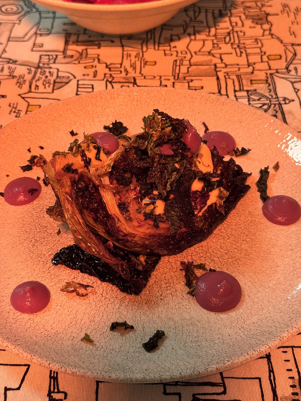 Wok Vegetables (vegan - right), Beetroot salad (not vegan - left)