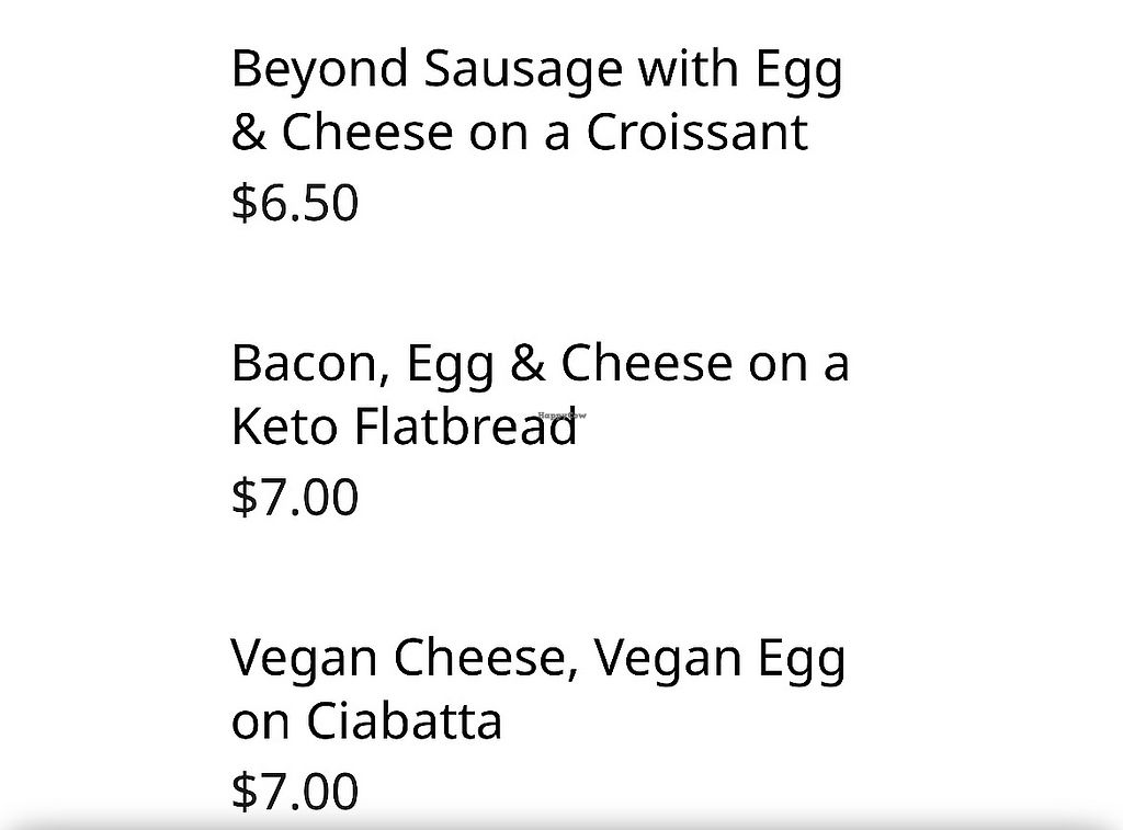 Really cool place, love the vibes and the food & coffee were great! Quick service and kind staff. It can be hard to find vegan breakfast, so I was pleasantly surprised to find this little spot during our trip to Watertown! I got the vegan breakfast sandwich, a vegan shortbread and an oat milk latte. All were lovely! All the vegan items were clearly marked, except for the non-dairy milk. They only have oat milk and I believe you have to ask for it as I didn't see a sign anywhere though I could have missed it. Would definitely stop here again if we make another trip to Watertown in the future!