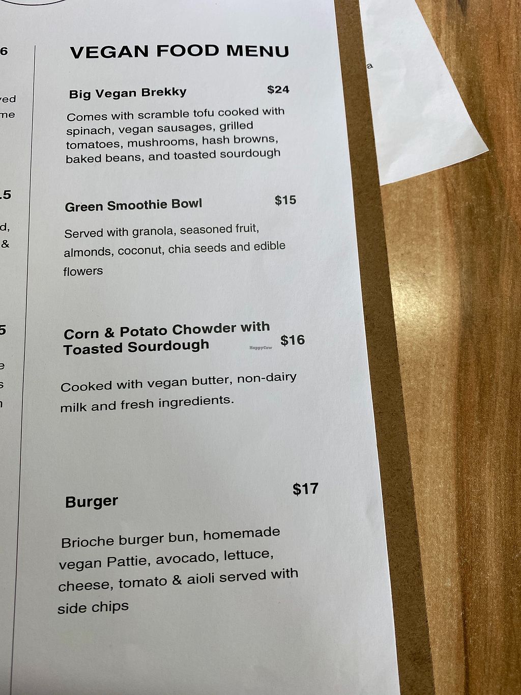 Serves meat, vegan options available. Small cafe with separate vegan menu. Items include big vegan breakky, burger, matcha waffles and a smoothie bowl. Reported closed June 2023.