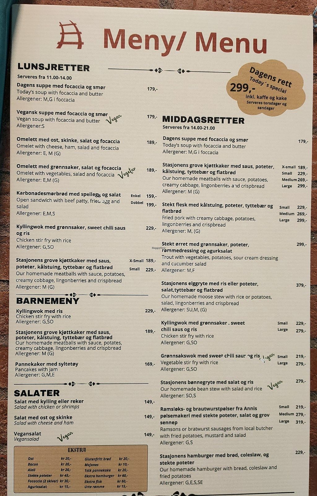 This cafe is located at the train/busstation in Lillehammer city. It's the only restaurant/cafe in Lillehammer, as far as I know, that actually has their own vegan meny! They serve hot and cold dishes and even has vegan apple cake! Loved the food and the staff, will come back to eat there again!