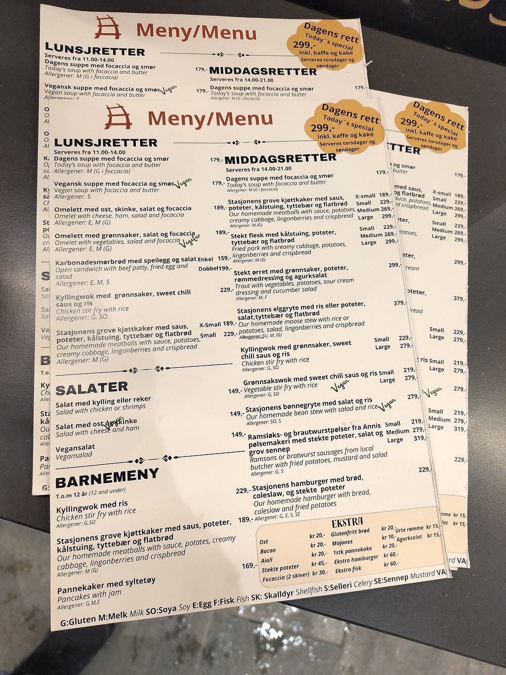 Vegan menu at Stasjonen cafe