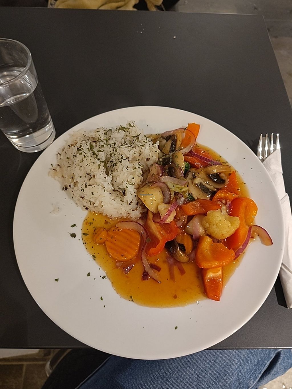vegan wok with sweet chili sauce, rice and salad. They also had latte …