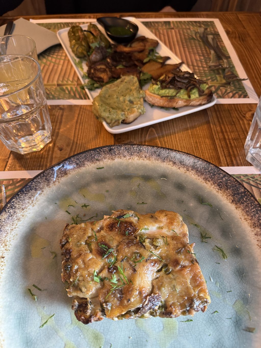 Antipasti- fried sage leaves, courgette flowers and chestnut bruschett…