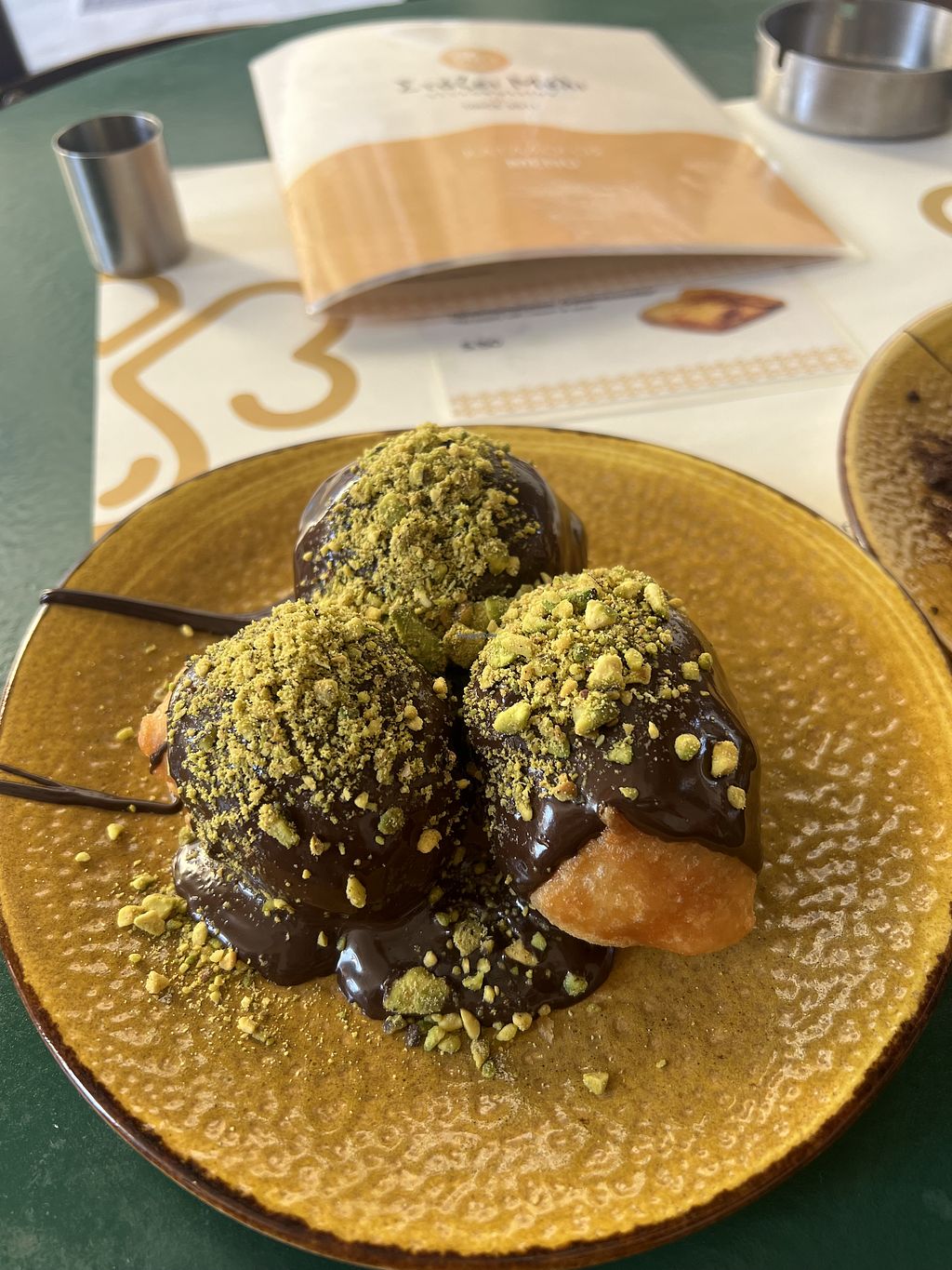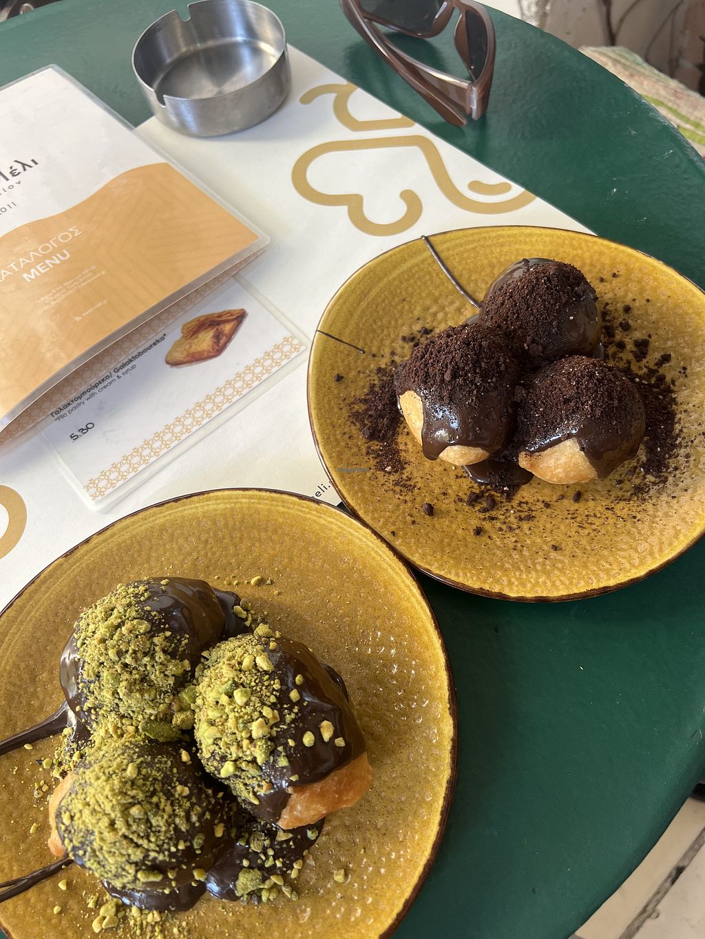 Had the most amazing vegan loukomades with dark chocolate and pistachio/ Oreo. They were massive and the worker was helpful regarding vegan options. Also marked on the menu.