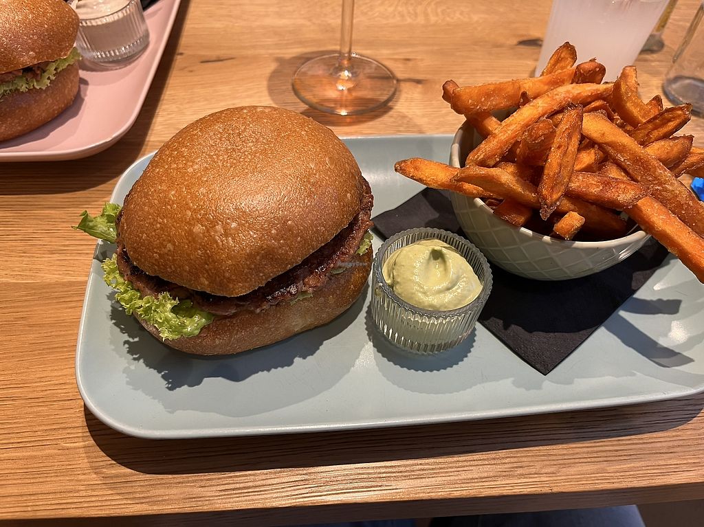 Leckerer Burger- hatte den Mako und der war wirklich schon scharf. Die würzigen Pommes waren auch lecker und das Personal auch freundlich.