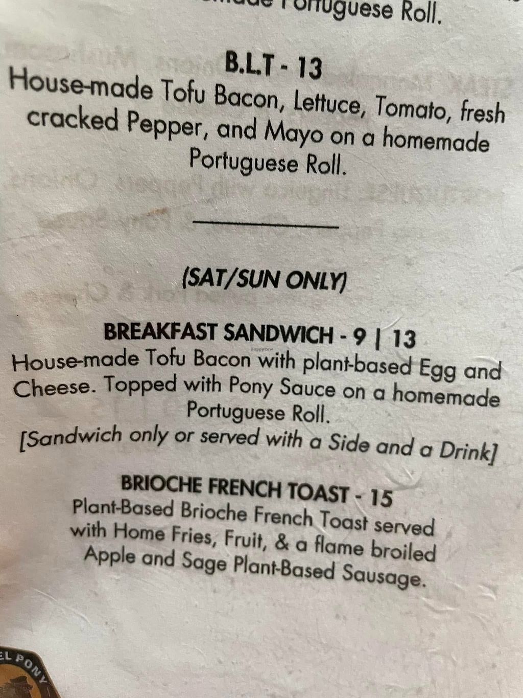 We had the vegan BLT with house made tofu bacon and house made Portuguese roll and slightly spicy vegan coleslaw. The flavor, food quality and service were absolutely wonderful. The owner was our server and said they will soon be expanding their vegan options. We will return