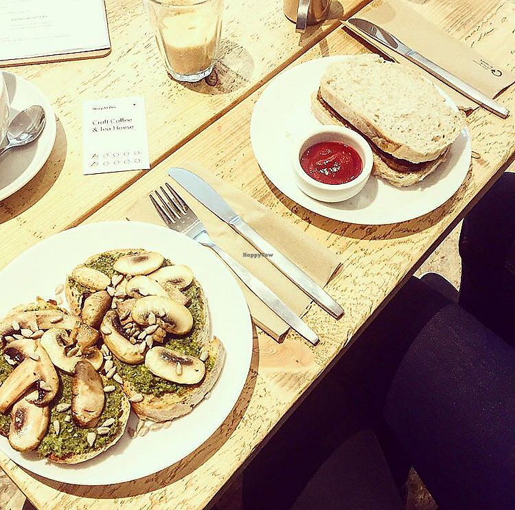 Such a friendly place to get a coffee and bite to eat. Went with non-vegan boyfriend and both ordered the v-bacon and mushroom sandwich and I had the flapjack while he had the orange polenta cake for afters. Everything was really tasty and he liked the tempeh sub for meat.