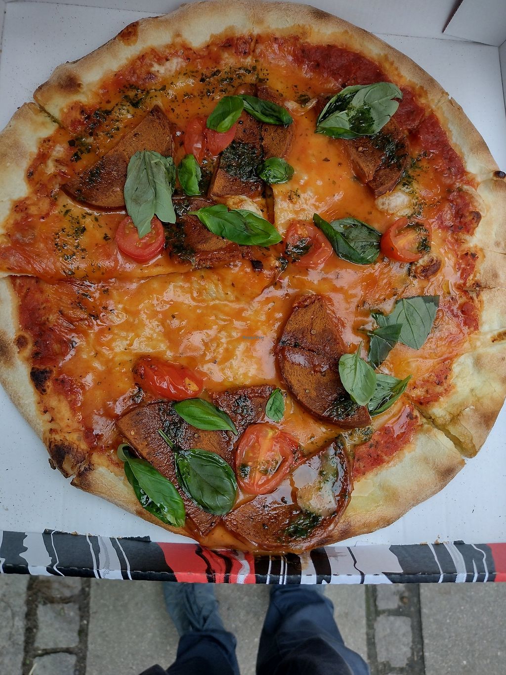Had the "Magic Sucuk" pizza with seitan-based sucuk and vegan cheese, which was one of the two vegan pizzas they have. Would be great with a bigger selection, of course, but I found it very good.