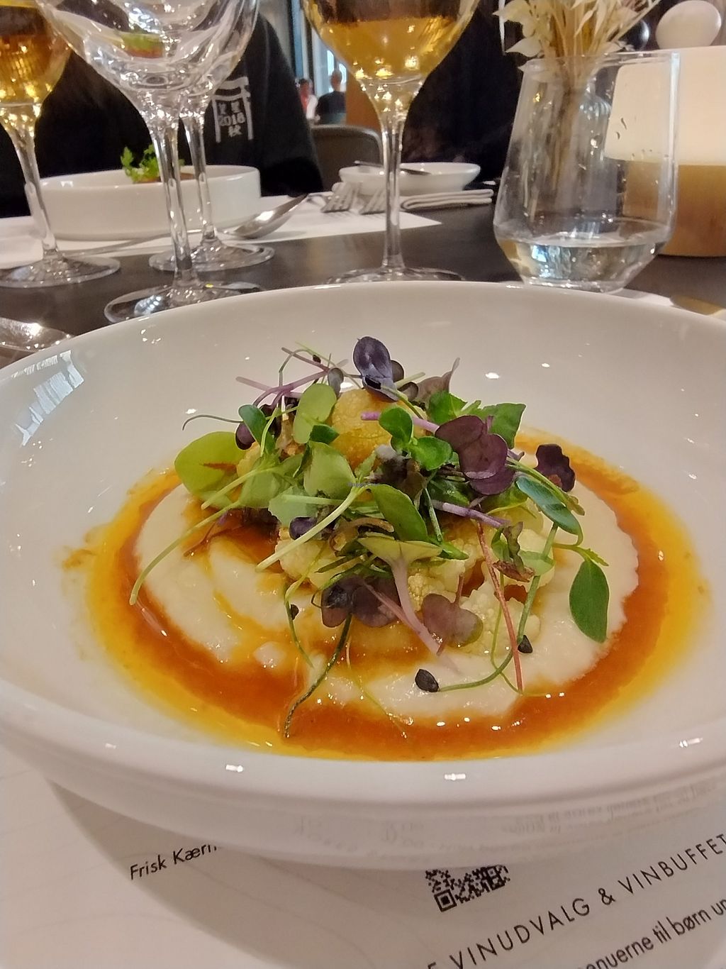 Read moreDa vi bestilte bord, fortalte vi, at vi gerne ville spise vegansk, og at vi desuden havde en peanut allergiker med, så kokken var forberedt. Restauranten kan tage højde for alle typer af allergier og spise præferencer, de er virkelig professionelle.