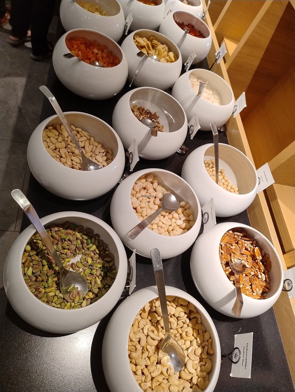 Stort udvalg af nødder, kerner, tørret frugt, cornflakes, havregryn, mysli og chia.