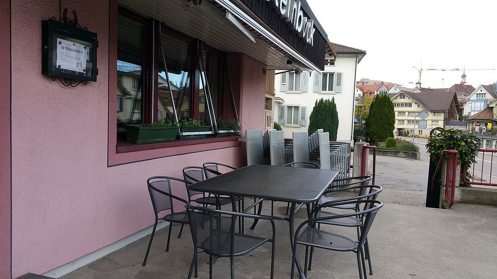 Serves meat, vegan options available. Swiss restaurant offering one marked vegan menu (Swiss hash browns with vegetables.) Ask if salads and sorbets can be veganized. Removed June 2023: Limited vegan options.