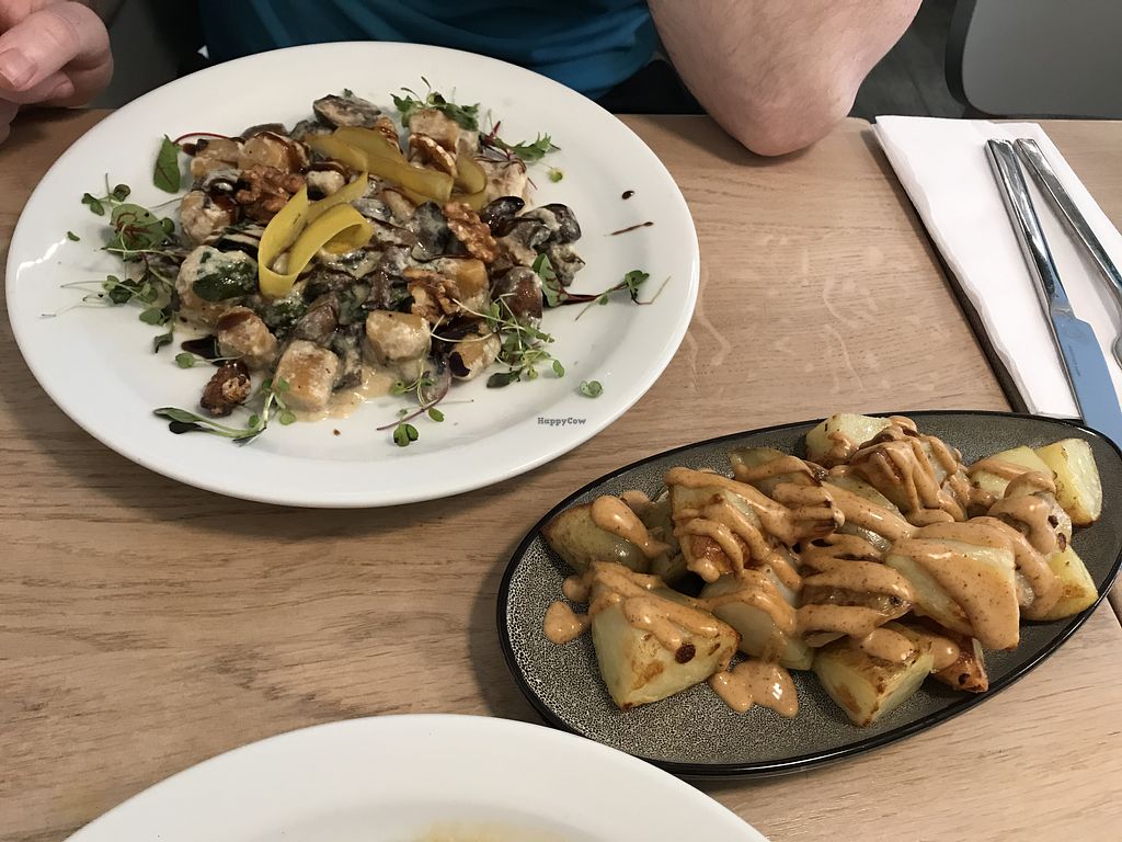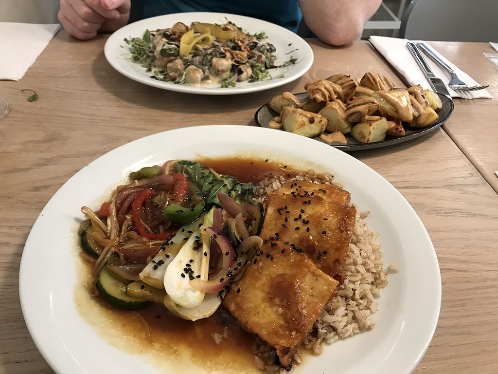 I’d heard about this place but had never been. Tried a bit of several dishes. Cannot recommend the kimchi pancakes, buffalo cauliflower and fettuccine enough. Plus the brownie was the best I’ve ever had (A good vegan brownie is something I’ve searched high and low for!)