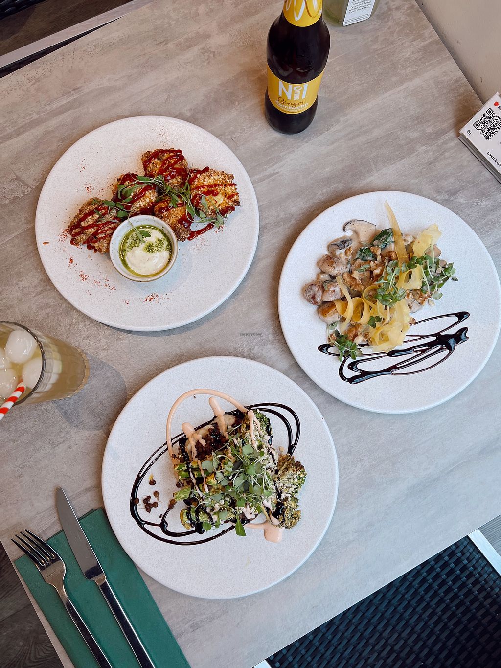 Service was super quick and friendly. We had a buyagift voucher and they were really accommodating and allowed us to select any main, desert or starter we wanted. The waitress was very friendly, interior very minimalist and light. Portion size was very fair and delicious! We had the buffalo cauliflower to start, the bbq Tempeh bao buns (AMAZING) and the cheese cake for dessert. Delicious!