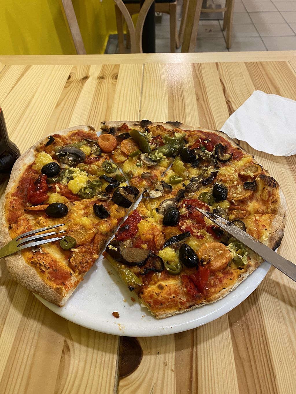 Die vegane Pizza schmeckt wirklich gut und hat einen guten Preis. Da können sich selbst größere Ketten noch was von abschneiden😁