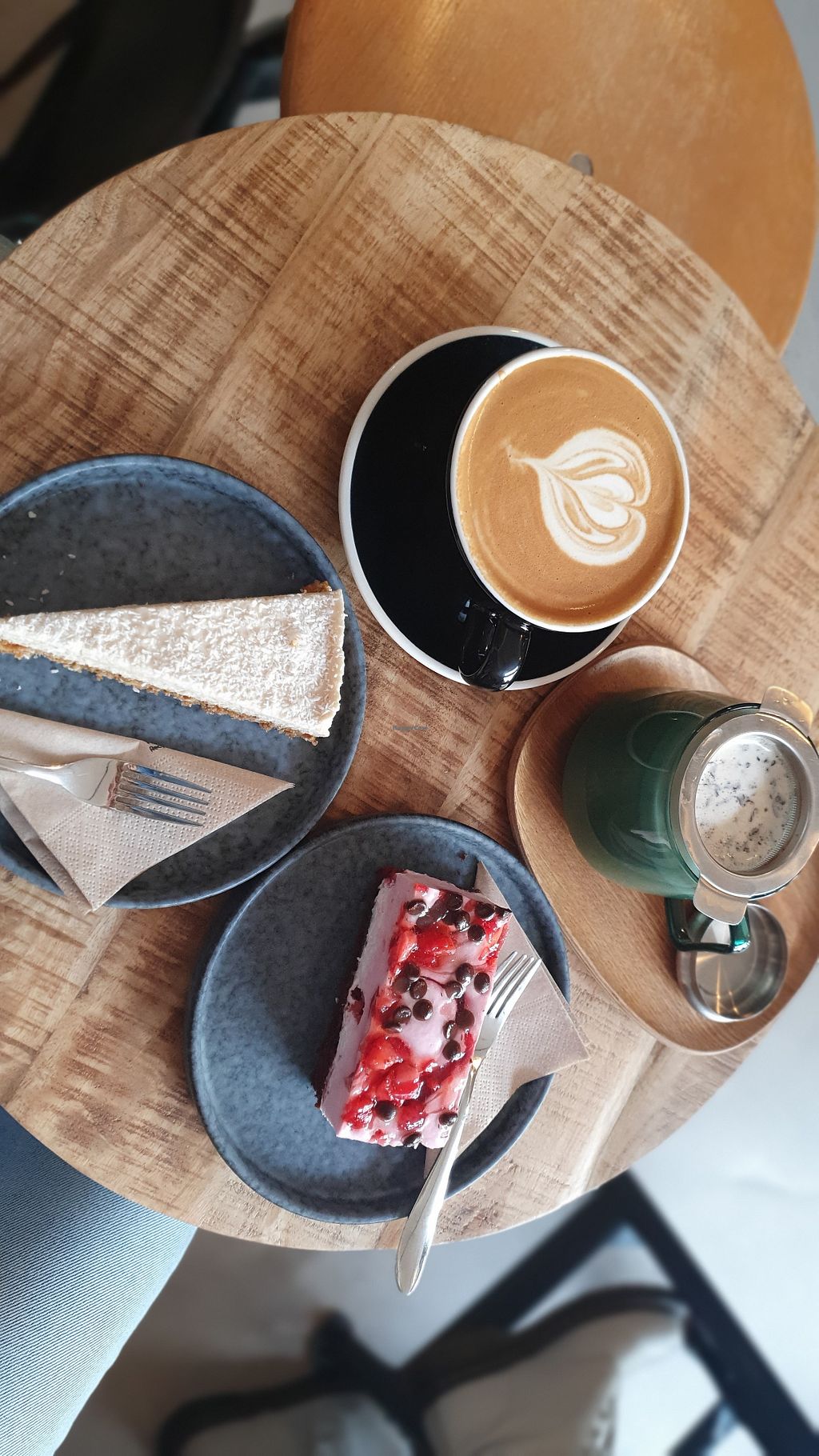 Leckerer Cappuccino mit veganer Kuchenauswahl - Edit