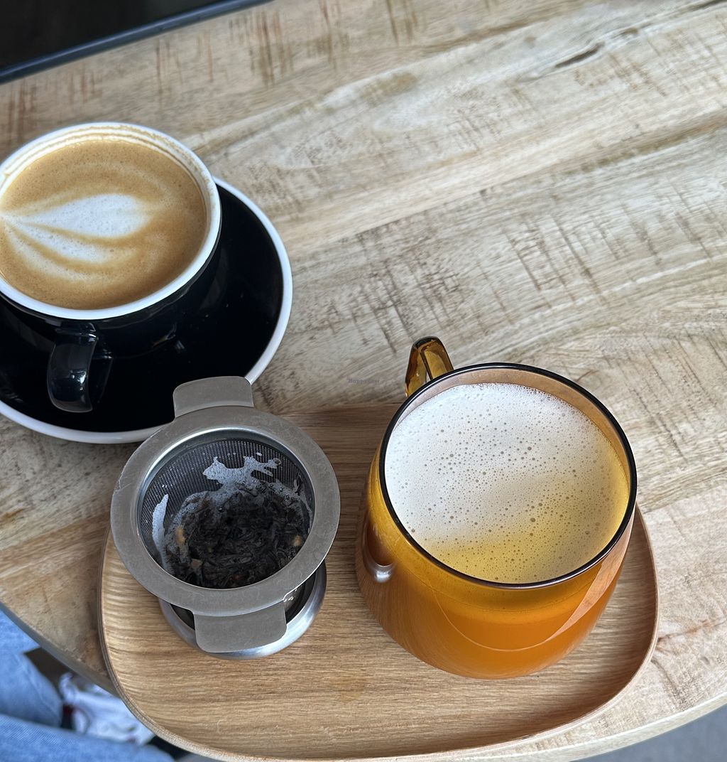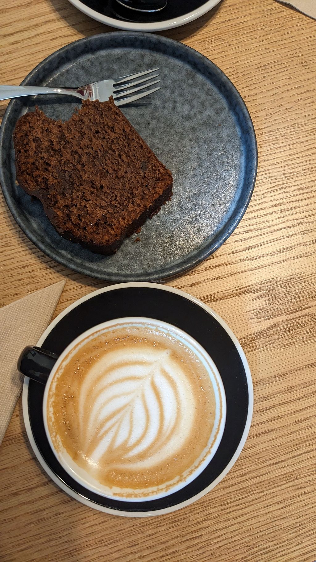 Lovely cafe with a cozy vibe. The day I was there all the cakes were vegan. I had a lovely carrot cake with a great frosting. Oat milk is available too.