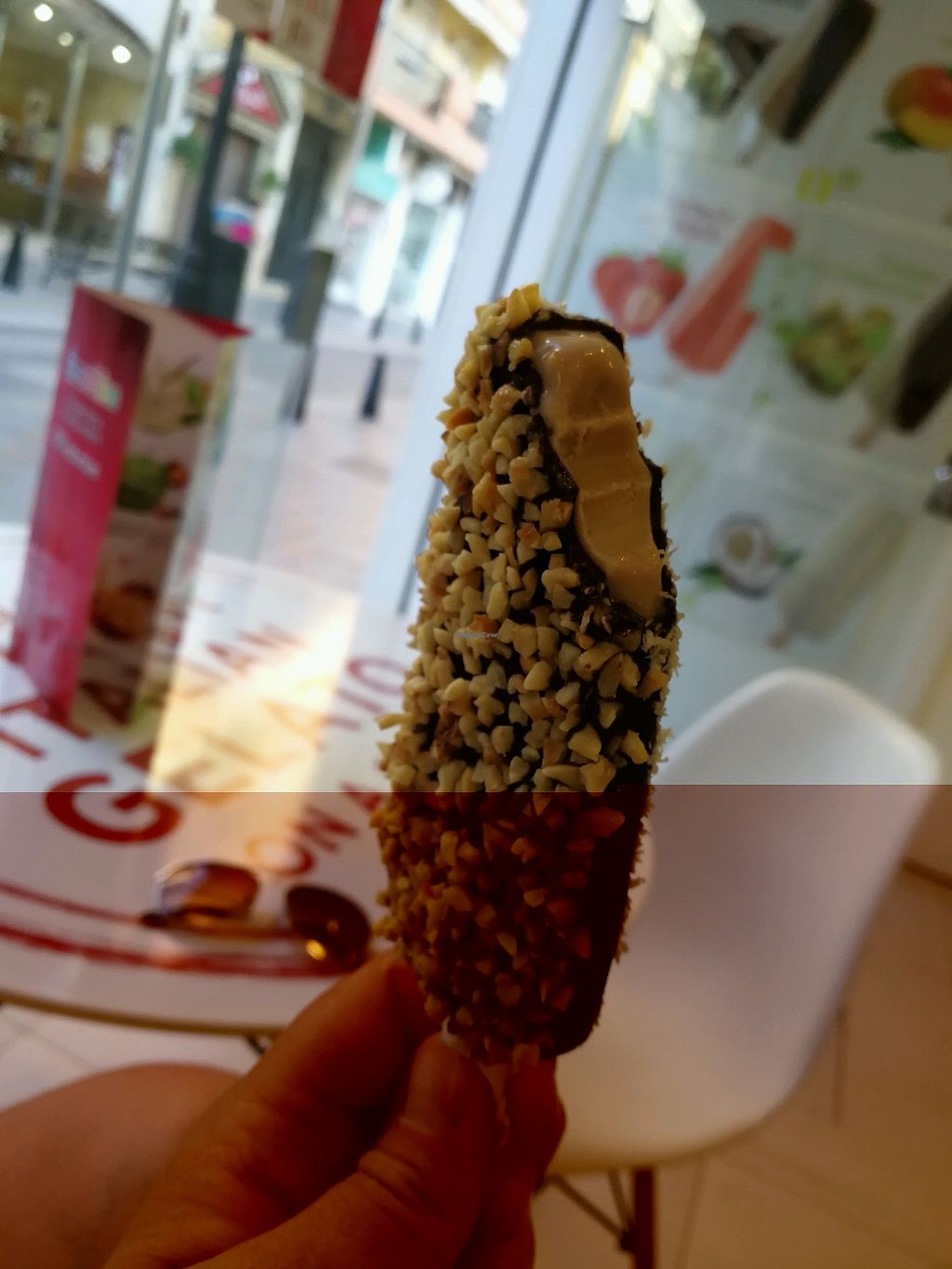 Hazelnut icecream dipped in dark chocolate drizzled with hazelnuts