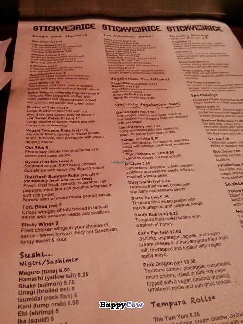 I went to Sticky Rice before reading reviews on Happy Cow. I had an entirely different experience. Maybe I got a different guy? He recommended the Hot Hippy and Dirtt South rolls. Both were superb and I am definitely going back to try EVERYTHING. I'm especially excited, because I just moved from Portland, OR and finding vegan food in Baltimore is more of a challenge.