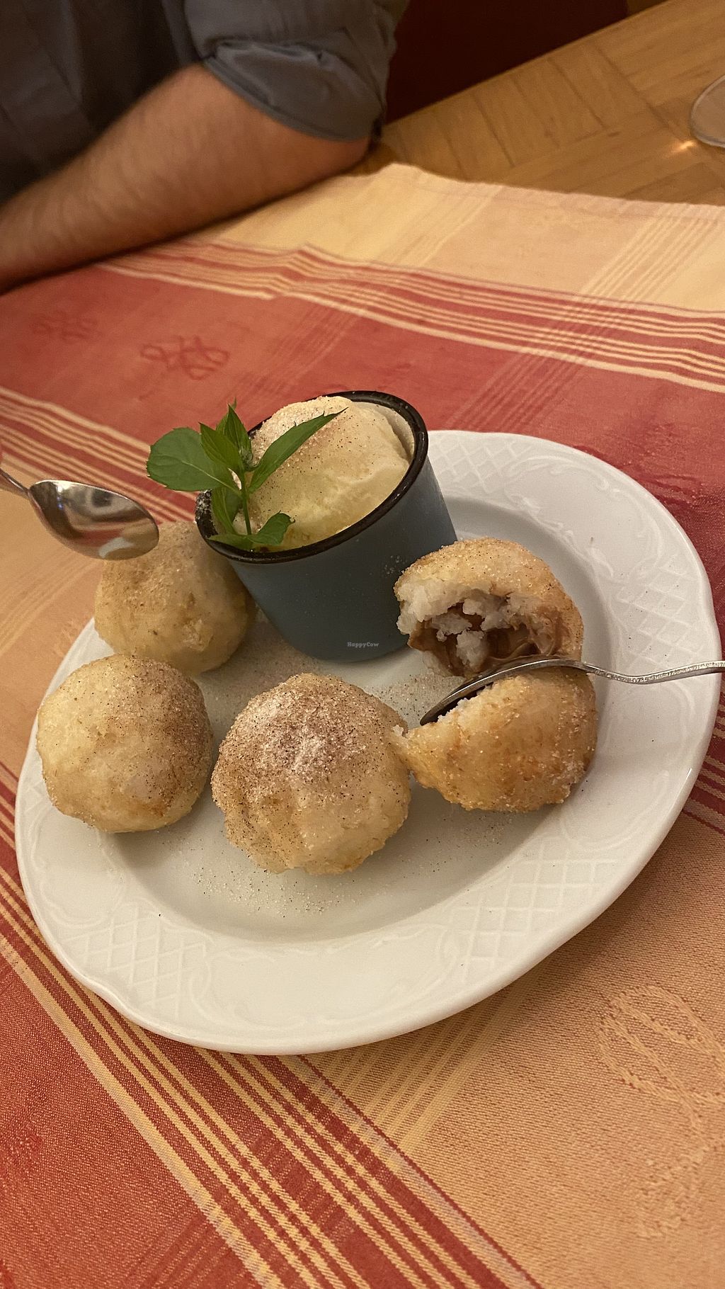 Gluten free nougat-rice dumplings with vanilla ice cream