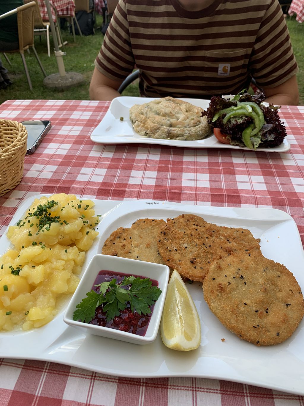Vegan schnitzel with potato salad