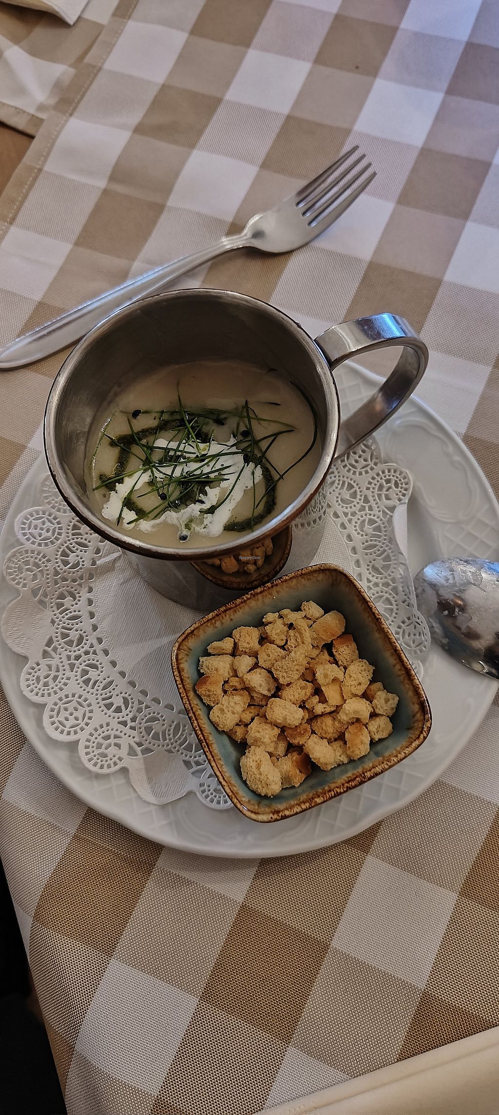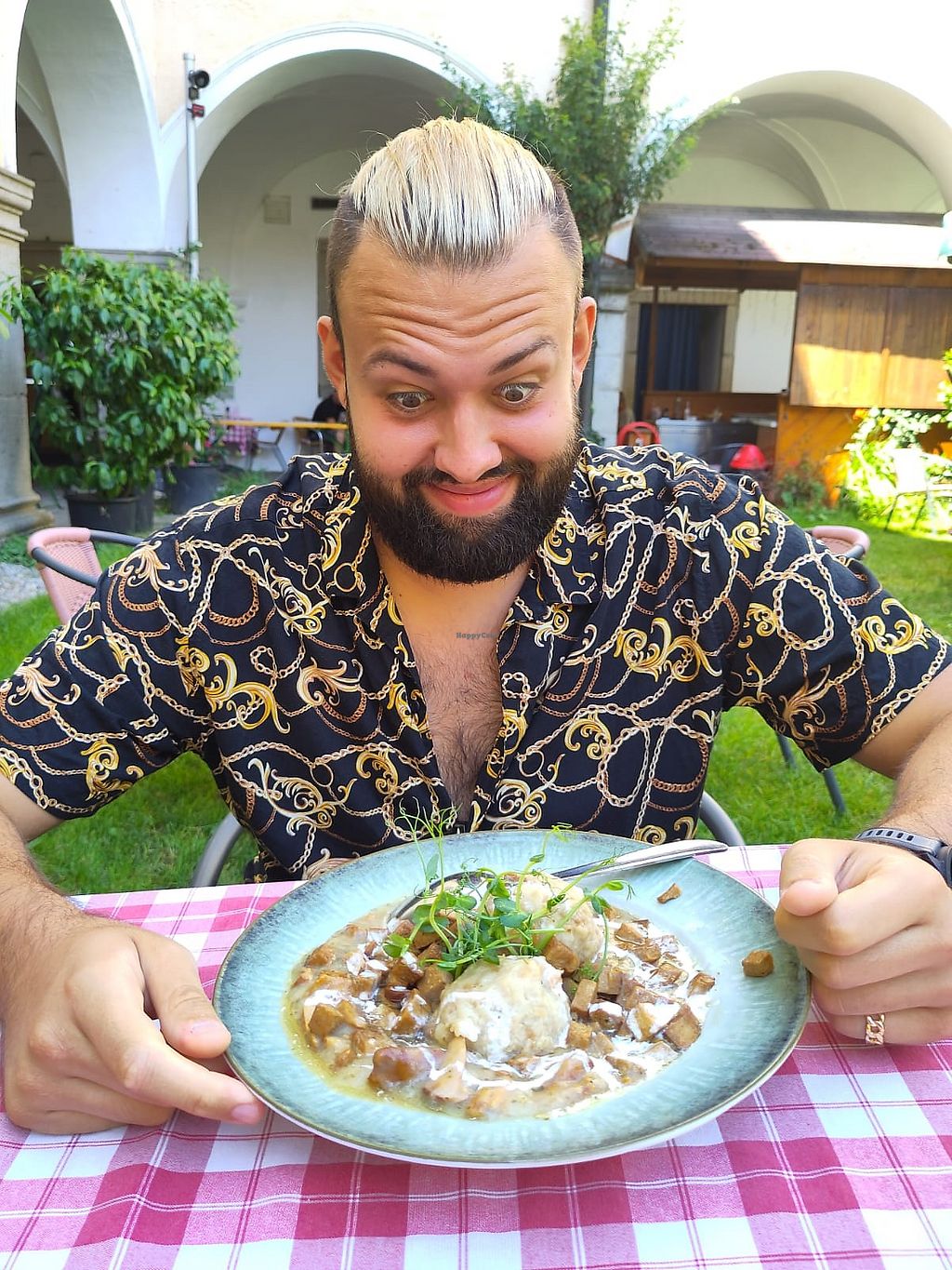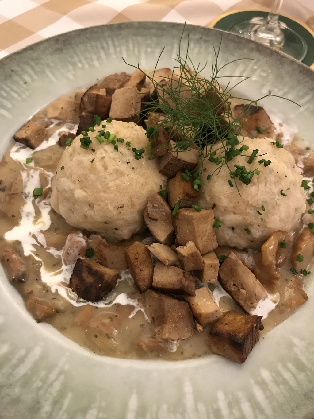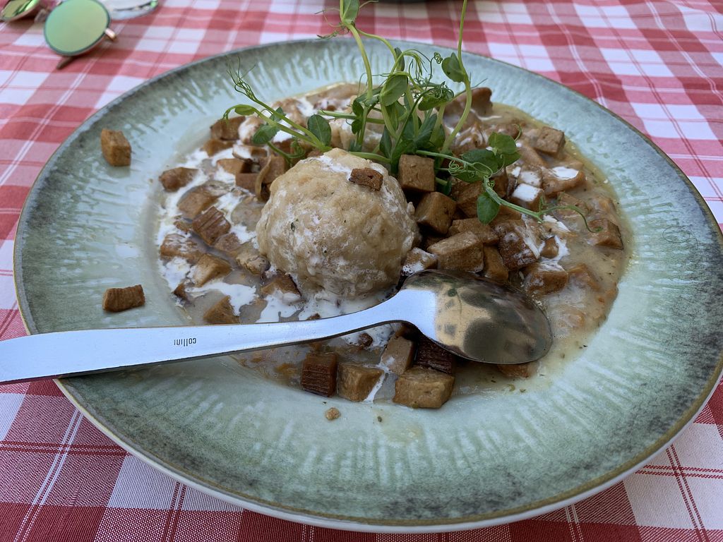 *Eierschwammerl mit Semmelknödel und "Speckwürfeln"